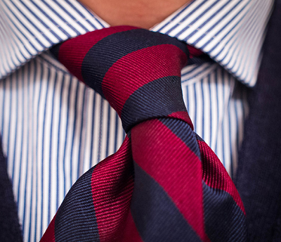A tie’s stripes should always be bolder than a shirt’s. It looks so much better and makes your tie stand out even more.